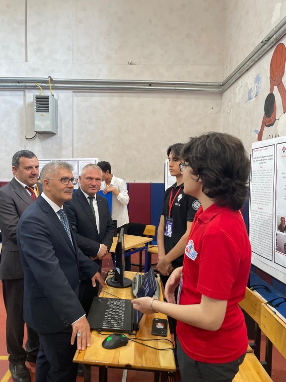 Okul Müdürümüz Yasin ŞANLITÜRK, Proje koordinatörü İsmail KİRAZ ve öğretmenlerimiz Yasemin TURAN, Cem Serhat MUSABEYOĞLU, Tolga GÜLER, Oğuz TUĞRAL, Arif ÖZTÜRK, Zahide DEMİR, Elife ÇİFTÇİBAŞI, Kemal GÜMÜŞ, Gonca CAVLAZ, Kürşad KÜÇÜKÇİRKİN, Hıfzı KAÇGAN ve Ahmet KAYA danışmanlığında öğrencilerimiz tarafından Yazılım ve Robotik Teknolojisi, Matematik, Sosyoloji, Teknoloji Tasarım, Biyoloji, Fizik ve Müzik alanlarında hazırlanan 19 proje sergilenmiştir. Ayrıca Görsel Sanatlar Öğretmenimiz Mehtap YEŞİLDAL öncülüğünde öğrencilerimizin yıl boyunca hazırladıkları eserler de fuar kapsamında sergilenmiştir.